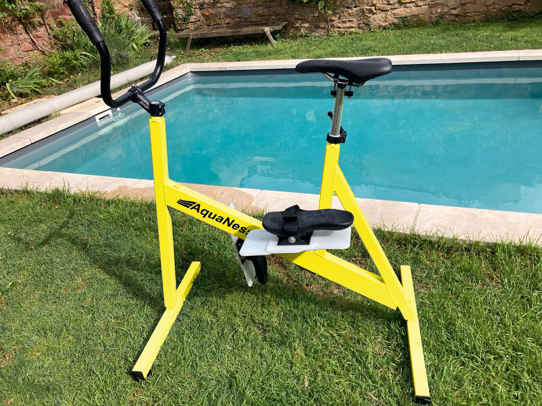 Alliant les bienfaits du vélo d’appartement à ceux de l’aquagym, l’aquabiking est une activité sportive excellente pour vous maintenir en forme, sculpter vos jambes, affiner votre silhouette et lutter contre la cellulite. L'Aquabike AquaNess V1 jaune est un modèle très robuste et léger, qui saura vous apporter tous ces bienfaits !