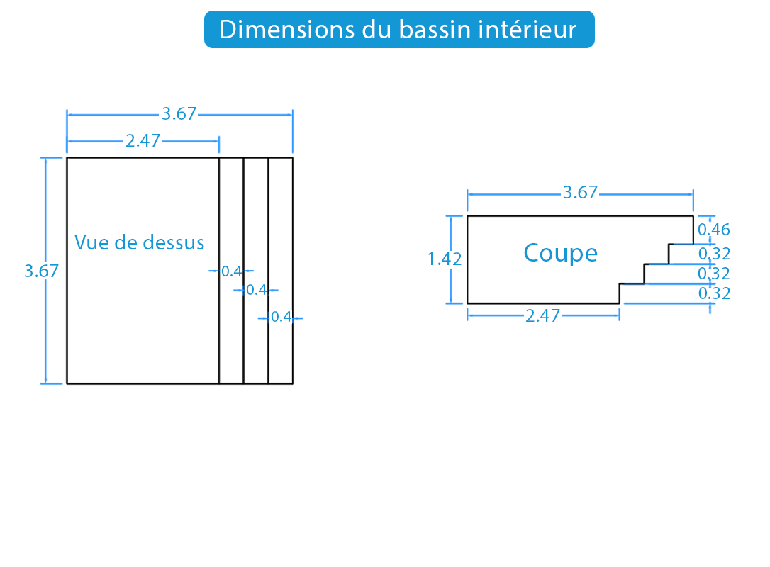 Liner 85/100ème pour piscine carrée 420x420x145cm avec escaliers PIERRE DE BALI
