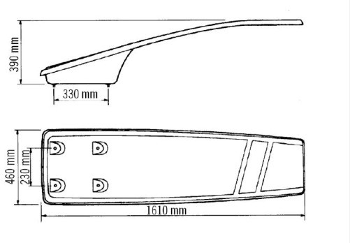 Il est fait en résine de polyester et fibre de verre. Sa surface est recouverte de Gelcoat Isoftalic, qui lui donne une meilleure résistance aux agressions externes, aux UV.
